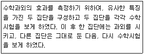 통제집단 사전사후측정설계(pretest-posttest control group design)의 핵심적 특징을 모두 짝지은 것은?