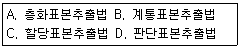 표본의 하위집단 분포를 의도적으로 정하여 표본을 임의로 추출하는 방법은?