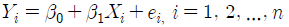 다음 단순회귀모형에 대한 설명으로 틀린 것은? (단, 오차항 ei는 서로 독립이며 동일한 분포 N(0,σ2을 따른다.)