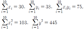 [사회통계] 단순회귀분석을 위하여 수집한 자료 10개에 대하여 다음의 요약된 값을 얻었다. 최소제곱법에 의하여 추정된 회귀직선은?