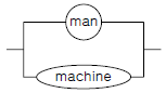 [인간공학 및 시스템안전공학] 다음 그림과 같은 man-machine system에서의 신뢰도를 구하면 얼마인가? (단, man의 신뢰도는 0.70 이고machine 신뢰도는 0.90 이다.)