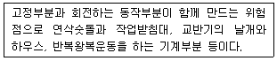 위 그림에서 끼임점은 물체가 기계 부품과 갇히거나 끼여서 움직일 수 없는 지점을 말합니다. 이는 기계운동이 멈추게 되어 위험한 상황을 초래할 수 있습니다.