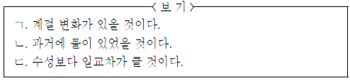 이 행성에 대한 추론으로 타당한 것만을 <보기>에서 있는 대로 고른 것은? [3점]