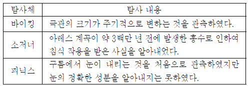 다음은 어느 행성의 탐사 내용을 나타낸 것이다.