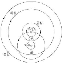 그림은 티코 브라헤의 우주관을 간단히 나타낸 것이다.
