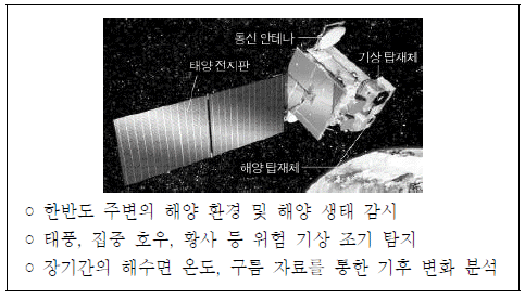 다음은 2010년 6월에 발사된 천리안 위성의 모습과 이 위성을 활용한 주요 탐사 내용을 나타낸 것이다.