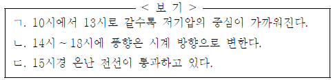 그림은 북반구 어느 지역에서 온대 저기압이 통과하는 동안 관측한 기온과 기압을 시간에 따라 나타낸 것이다.