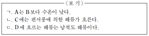 A~D 해역에 대한 설명으로 옳은 것만을 <보기>에서 있는 대로 고른 것은? [3점]