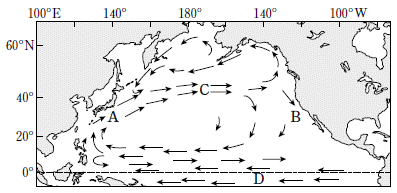 그림은 태평양의 표층 해류를 나타낸 것이다.
