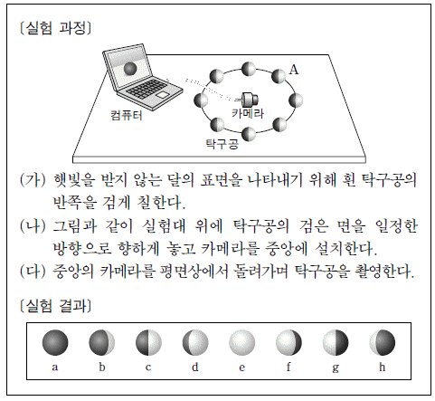 다음은 영희가 달의 위상 변화를 이해하기 위하여 수행한 실험을 나타낸 것이다.