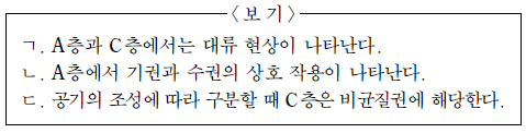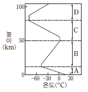 그림은 지구 대기의 높이에 따른 기온을 나타낸 것이다.