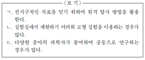 이와 관련된 지구과학 탐구의 특징으로 옳은 것만을 <보기>에서 있는 대로 고른 것은?
