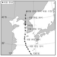 그림은 2012년 8월 우리나라에 영향을 준 태풍 볼라벤의 이동 경로를 나타낸 것이다.