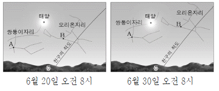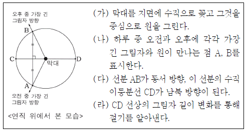 다음은 고대 이집트(30°N)에서 동서남북 방향과 절기를 알아내는 방법을 순서대로 나타낸 것이다.