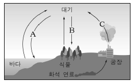 그림은 지구 환경에서 탄소가 순환하는 과정의 일부를 나타낸 것이다.