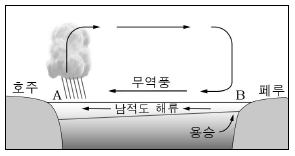 무역풍의 세기가 평상시보다 약해질 때 나타나는 현상에 대한 설명으로 옳은 것만을 <보기>에서 있는 대로 고른 것은? [3점]