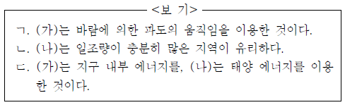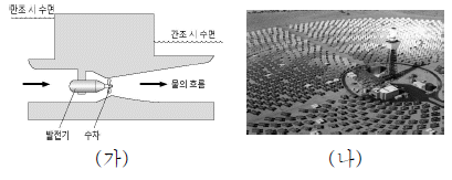 그림 (가)는 조력 발전의 원리를, (나)는 태양열 발전 시설을 나타낸 것이다.