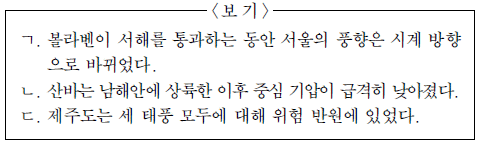 그림은 2012 년 한반도에 영향을 미친 세 태풍의 이동 경로를 나타낸 것이다.
