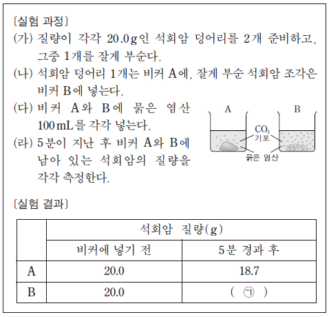 다음은 풍화에 영향을 주는 요인을 알아보기 위한 실험이다.