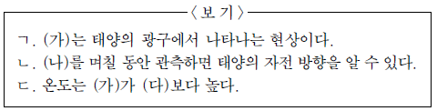 그림 (가)~(다)는 태양에서 나타나는 현상이다.
