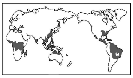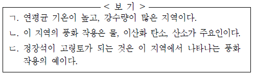그림은 화학적 풍화 작용이 우세한 지역을 나타낸 것이다.
