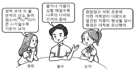 다음은 고기후 연구에 사용되는 여러 가지 방법에 대한 세 학생의 대화이다.