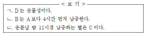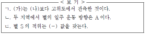 이에 대한 설명으로 옳은 것만을 <보기>에서 있는 대로 고른 것은? (단, 관측 지점의 위도는 37.5°N이다.) [3점]