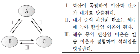 A ~C 에 해당하는 지구계 구성 요소로 옳은 것은? (순서대로 A, B, C)
