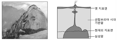 그림은 북한산 화강암의 모습과 생성 기원을 나타낸 것이다.