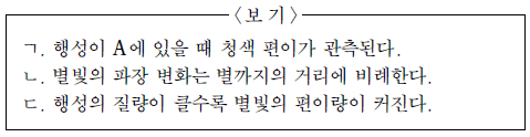 이에 대한 설명으로 옳은 것만을 <보기>에서 있는 대로 고른 것은? (단, 중심별은 주계열성이다.) [3점]