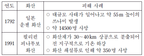 다음은 화산 활동에 의한 피해 사례를 조사한 것이다.