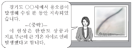 다음은 어느 지역에서 발생한 기상 현상에 대하여 방송하는 장면이다.