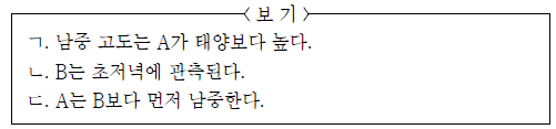 춘분날 우리나라에서 나타날 수 있는 현상으로 옳은 것만을 <보기>에서 있는 대로 고른 것은? [3점]