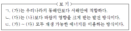 다음은 해양에서 전기 에너지를 생산하는 방식에 대한 설명이다.