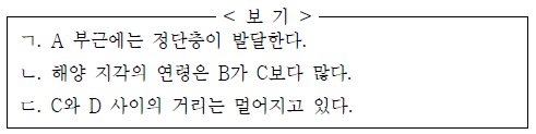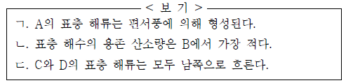 A ~ D 해역에 대한 옳은 설명만을 <보기>에서 있는 대로 고른 것은? [3점]