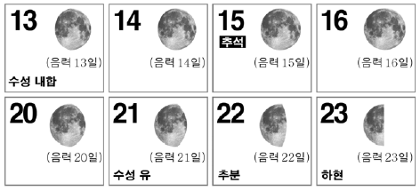그림은 2016년 9월의 천문 현상을 나타낸 달력의 일부이다.