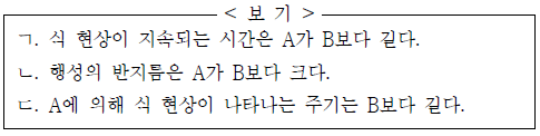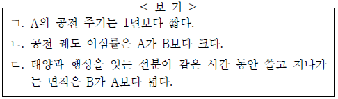 이에 대한 옳은 설명만을 <보기>에서 있는 대로 고른 것은? (단, 행성 A, B의 공전 궤도면은 관측자의 시선 방향과 나란하다.) [3점]