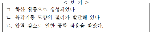 인왕산을 구성하는 암석에 대한 옳은 설명만을 <보기>에서 있는 대로 고른 것은? [3점]