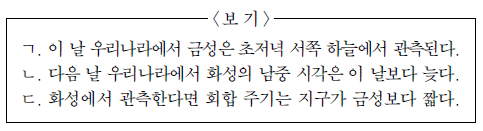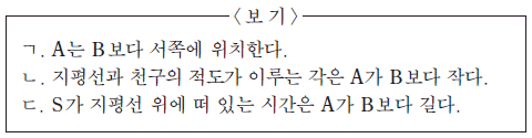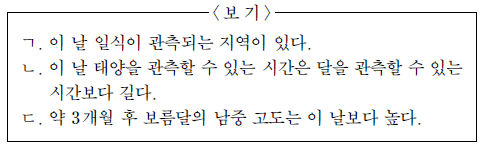우리나라에서 관측했을 때, 이에 대한 설명으로 옳은 것만을 <보기>에서 있는 대로 고른 것은?