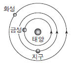 그림은 어느 날 태양에 대한 금성과 화성의 상대적 위치를 나타낸 것이다.