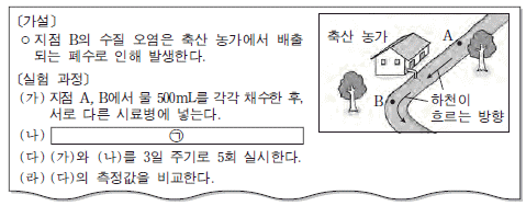 다음은 어느 하천의 수질 오염을 알아보기 위하여 민수가 작성한 실험 보고서의 일부이다.