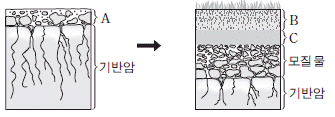 그림은 성숙 토양이 만들어지는 과정의 일부를 나타낸 것이다.