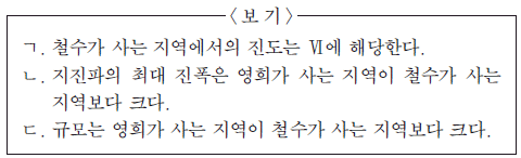 이 지진에 대한 설명으로 옳은 것만을 <보기>에서 있는 대로 고른 것은? [3점]