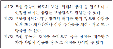 - ③ 많은 사유림이 국유림으로 강제 편입되었다.