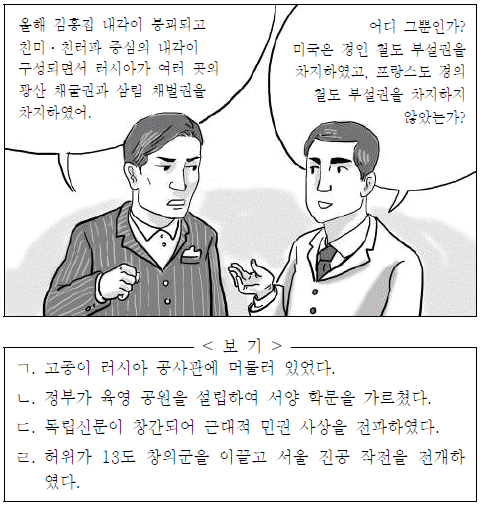 [과목 구분 없음] 다음 대화가 오고 갈 당시의 상황으로 옳은 것을 <보기>에서 고른 것은? [3점]