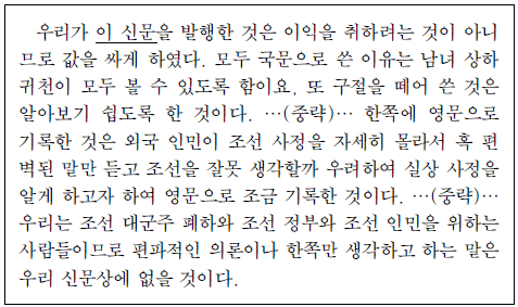 이 신문이 창간된 당시는 고종이 러시아 공사관에 머물고 있었던 시기였다.