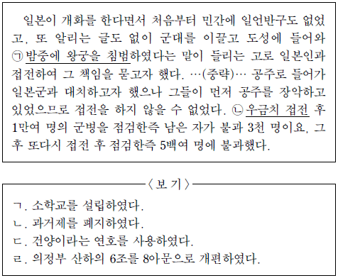 [과목 구분 없음] 밑줄 친 (ㄱ), (ㄴ) 사이의 시기에 정부가 추진한 개혁 정책을 <보기>에서 고른 것은?