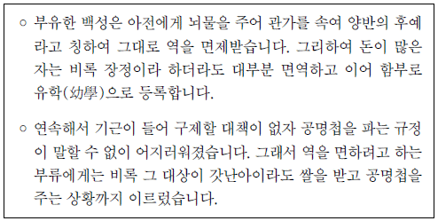 대화를 통해 알 수 있는 폐단을 해결하기 위해 실시한 제도로 옳은 것은?