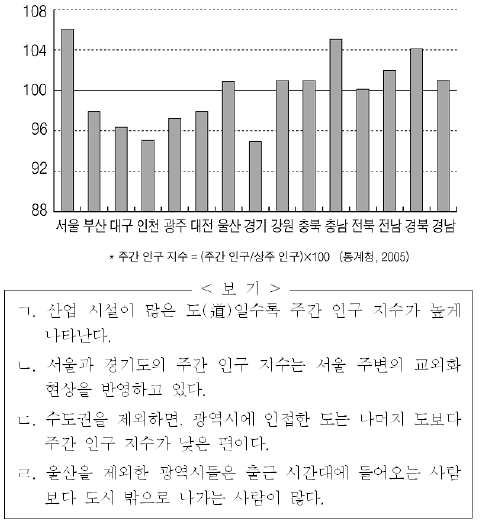 [과목 구분 없음] 자료는 시도별 주간 인구 지수를 나타낸 것이다. 자료를 옳게 해석한 내용을 <보기>에서 모두 고른 것은? [3점]