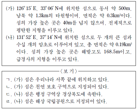 (가), (나) 섬에 대한 옳은 설명을 <보기>에서 고른 것은? [3점]
